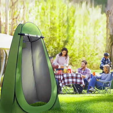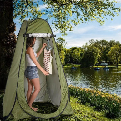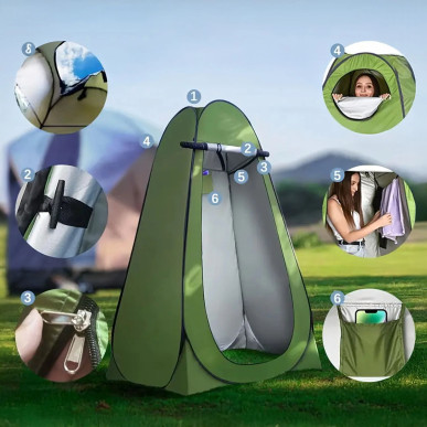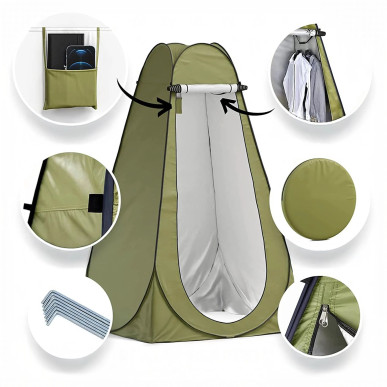Może służyć jako przebieralnia, namiot prysznicowy, toaleta turystyczna lub schronienie przed słońcem i wiatrem.