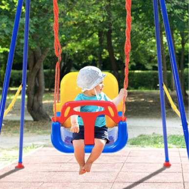 ✅ Pełna huśtawka z oparciem i barierką z przodu dla najmłodszych dzieci (sugerowany wiek dziecka 6 miesięcy - 3 lata).