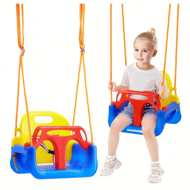 Huśtawka kubełkowa dla dziecka 3w1 to modułowe, bezpieczne siedzisko, które rośnie wraz z dzieckiem, oferując różne konfiguracje dla niemowląt, przedszkolaków i starszych dzieci. Może być używana zarówno w domu, jak i w ogrodzie.