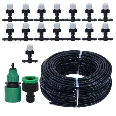 Kurtyna wodna o długości 15 metrów to wielofunkcyjny system, który doskonale sprawdzi się podczas upalnych dni oraz jako element automatyzacji ogrodu. Wyposażona w 15 precyzyjnych dysz zraszających, wytwarza delikatną mgiełkę, która potrafi obniżyć temperaturę otoczenia o 10–12°C. Jest to idealne rozwiązanie do montażu w altanach, na tarasach, balkonach, a także w tunelach foliowych i szklarniach.