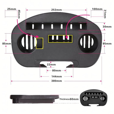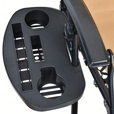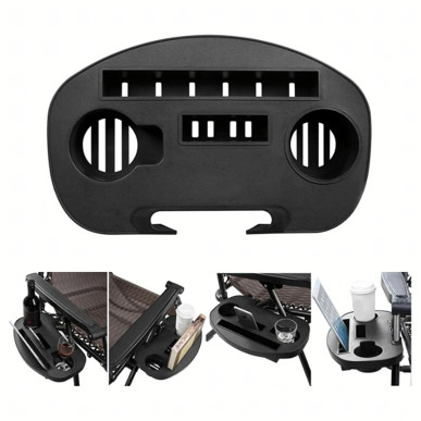 📱 Przemyślana konstrukcja – posiada otwory na kubek, butelkę, telefon, a także tackę na przekąski – idealny zestaw do odpoczynku.